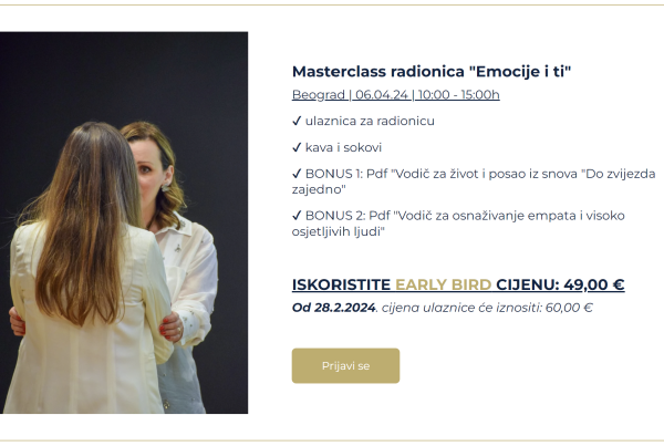 Snimka radionice dostupna je na zahtjev, a uz nju ćete na poklon dobiti i vodič za život i posao iz snova “Do zvijezda zajedno”.